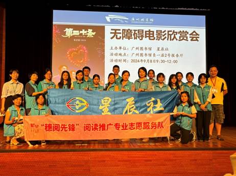 2024年9月8日,广州图书馆联合星辰社在负一层2号报告厅举办第98期无障碍电影欣赏会,资深口述员陈国英、刘一鸣、刘宁、容芳解说了电影《第二十条》,100多位读者观众(含视障人士、听障人士、肢体残疾、非视觉体验读者)参与了本次活动。