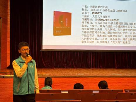 在讲解过程中,星辰社曾海燕先介绍了电影中的人物,包括角色的形象、穿着以及性格特征等信息,让视障读者更好地欣赏这部影片。陈国英、刘一鸣、刘宁、容芳四位口述员接力进行两个多小时的讲解,她们专业的口述能力和认真的工作态度极大程度地传达了电影的情感和内涵。生动而深刻地展现了正当防卫条款对社会公众的行为的指导作用,如何在自身或他人正在受到侵害时,挺身而出自救或保护他人。电影中不乏搞笑和感人的情节,她们在感动中尽量克制情绪,准确地向全场视障读者传递电影信息,收到多位视障读者的感谢和赞赏。光看电影还不能过瘾,图书馆员为读者推荐了关于正当防卫案例的几本书籍,以激发读者阅读兴趣,深入了解刑法第二十条。