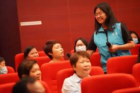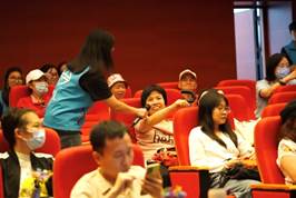 观影结束后,进行了互动环节。口述员将纪录片中关于故宫知识点整理后进行了有奖问答,以提高活动的效果,广州图书馆和星辰社精心准备志愿者手工布艺花束和故宫书签,此时活动掀起了一阵抢答热潮。也有视障读者表示自己曾经参观过故宫,如今能从纪录片中再一次观影故宫的真实面貌,震撼于中国传统文化的魅力。现场观众意犹未尽时,主持人对广州图书馆内关于故宫的文献资源进行了推荐,并对视障人士服务和纪录片中心服务进行了介绍,在活动结束后借走了现场准备的故宫相关的书籍。在口述员的倾情演绎,读者的密切配合以及志愿者的共同维护下,本场活动取得圆满成功。