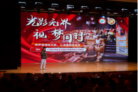随后进行的汇报演出环节精彩纷呈。志愿者代表关月明和外国友人Scott分享了“视障助跑”的温暖经历,诠释了黑暗中并肩前行的信任与光芒。来自广州大学经济与统计学院的“声绘山河”团队,生动讲述了他们发起“光影无界 视梦同行”文化助残项目的初心与实践。该项目组织大学生志愿者深入河源、梅州等地,通过口述影像、无障碍电影放映、盲文体验工作坊等形式,为当地视障群体及乡村儿童播撒文化的种子,将高校的智力资源与青年的公益热情转化为实实在在的陪伴与服务。