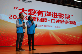 广州市最美文旅志愿者曾海燕分享了2025年团队成员在广佛深等地影院为视障朋友口述电影的丰富经历,在过去的一年里他们总共讲了7部电影共13场次,该系列活动“大爱有声进影院”为1000多名视障朋友圆梦影院。团队成员“黄蓉组合”还在现场口述影像《震耳欲聋》片段,让大家现场感受到这种无障碍影视讲解艺术形式的魅力。