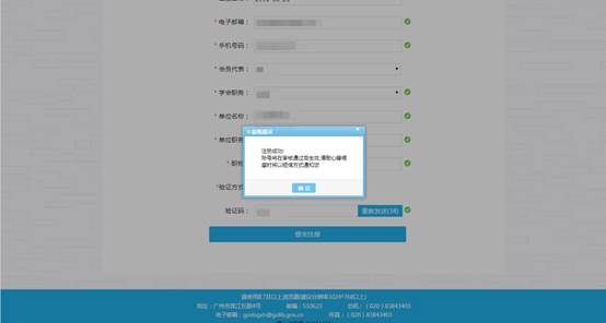 审核通过后将收到“尊敬的***,您的个人用户申请已通过,欢迎您使用广州市图书馆学会会员管理系统!”的短信及邮件,表示已注册成功。