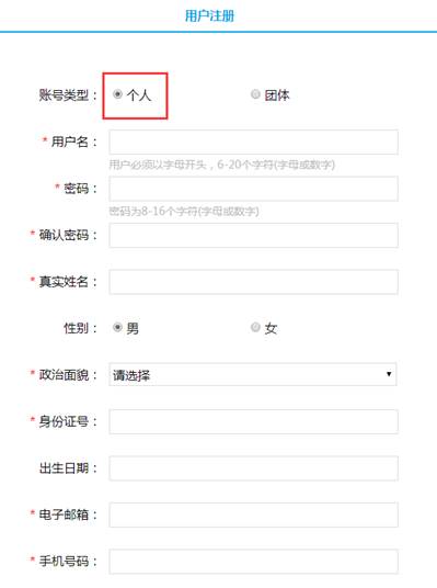 提示:★账户类型——选择“个人”。