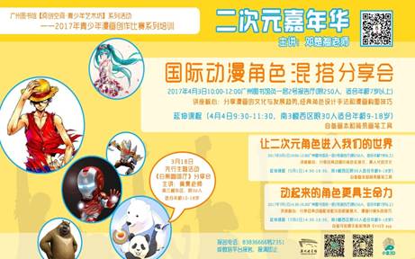 广州图书馆开展“发现漫画中的阅读精灵”——2017广州市青少年漫画创作大赛,为配合大赛举办,让参赛者对漫画阅读及创作有较全面的了解,将结合主题组织不少于15场常规培训活动及2-4场大型培训讲座。