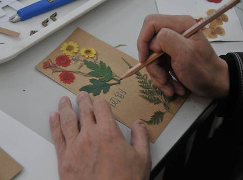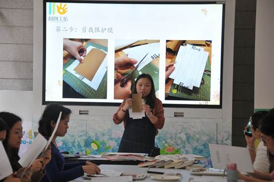 活动一开始,义工志愿者为现场读者阅读了一篇美文《把窗子开向春天》的其中一个选段,让大家沐浴在美文的韵律之下。随后,手工老师开始为大家介绍制作压花笔记本的具体步骤。
