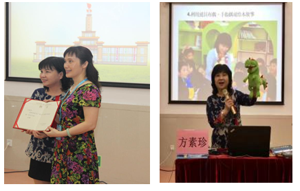 研修班设置了两天的面授课程,开班第一天即有童书阅读推广从业人员推崇的著名儿童阅读推广“大咖”、来自台湾的儿童文学作家方素珍担纲授课。方老师的童书著作丰富并且获奖无数,在两岸、香港和东南亚等地推广阅读使她在圈中声名远扬,广州少年儿童图书馆借邀请方老师来穗授课之机,将其聘为本馆的“阅读推广指导专家”,吴翠红副馆长为方老师颁发了聘书。
