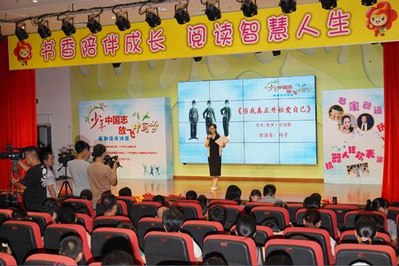 活动当天以“少图阅读知识抢答”激战环节开启,孩子们聪颖机智、争相回答,瞬间化身“图书馆知识小达人”,体现了新时代少年博览群书、勇敢自信的风采。接下来是名家朗诵环节,广东省朗诵协会副会长、广东省青少儿语言艺术专业委员会主任祖晴、广东省青少儿语言艺术专业委员会副主任杨芳、广东省青少儿语言艺术专业委员会委员、广东广播电视台新闻主持鲁阳三位名家相继为小读者们朗诵海伦·凯勒的《假如给我三天光明》、卓别林的《当我开始真正爱自己》和王尔德的《巨人的花园》,艺术家们通过荡气回肠的朗诵艺术唤起青少年对经典文学的感动,对梦想的追逐,深深感受阅读的魅力。