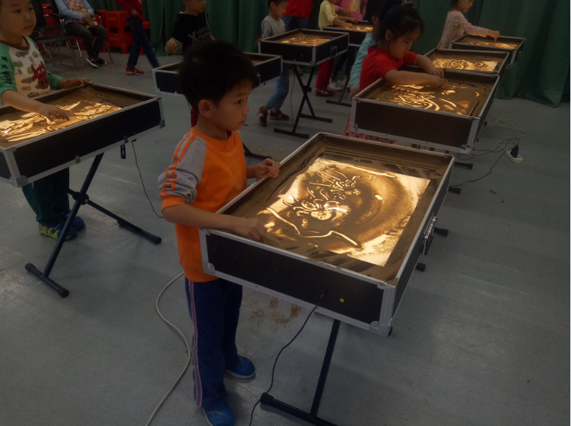 第二个主题是带领孩子画风景画,远处的群山,惊涛的海浪,巍峨的长城……都可以利用沙子不同纹理表现出来,学习沙画可以有效锻炼孩子大脑发育,需要运用左右手的配合,对孩子协调性有很好的帮助。