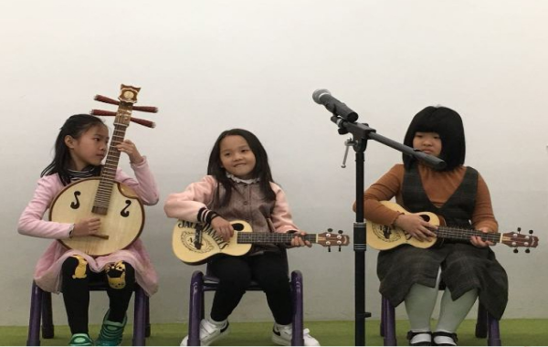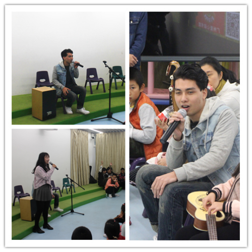 好玩有趣的游戏过后,阿杰老师与中山大学吉他协会的同学们给大家带来了几首脍炙人口的流行歌曲。小朋友们听到熟悉的旋律,也不禁轻轻哼唱起来。方老师还邀请了三位爱好音乐的小读者与阿杰老师、中大吉协同学一起为大家演奏一曲《铃儿响叮当》,三位小小音乐家毫不怯场,在她们的主场上奏响了最纯真的音乐梦想。