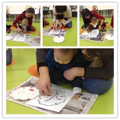 呀!原来红红的苹果是长在树上的,那就让我用小手来点一点,点出可爱的小苹果。