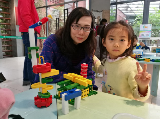 讲完绘本后,工作人员让小读者进行玩具拼装,在爸爸妈妈的协助下,尽情地拼装玩具,秀创意,一件件有趣的作品诞生了!