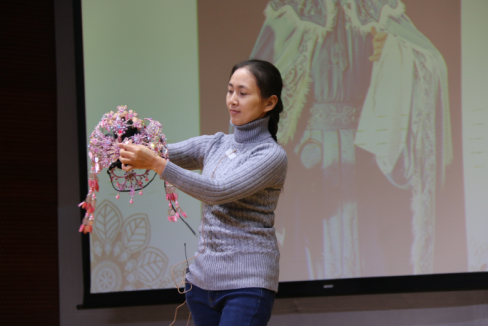 图7 邱小娜老师向读者展示粤剧头饰