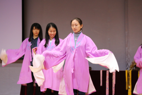 在互动环节,邱小娜老师邀请观众上台一同“耍把子”(双头枪)、“舞水袖”,一边练功,一边讲解服饰、道具和动作的意义。通过讲解和互动,观众们不但对粤剧的服饰和道具有了更加形象的认识,还对“手眼身法步”有了更加深入的了解。