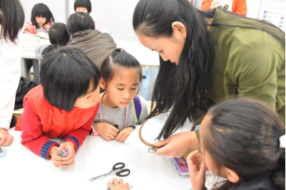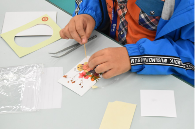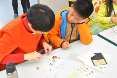 课程伊始,蔡老师先为孩子们展示了广绣的历史及制作流程。广绣不仅是一项技艺,更是一份历史、一份传承,在蔡老师娴熟的手法下,植物、动物等优美的广绣作品跃然而出、灵动传神。首先,老师展示了花朵的绣法,然后耐心的为孩子们辅导,让孩子们开始动手制作。尽管广绣内涵深远,制作复杂,孩子们在课堂上仍然竭尽全力去跟上老师的步伐,制作出自己的广绣作品,而且本次课程课堂氛围活跃,欢声笑语不断,在让孩子们感受到广绣艺术魅力的同时,也领悟到中华民族传统文化的博大精深。