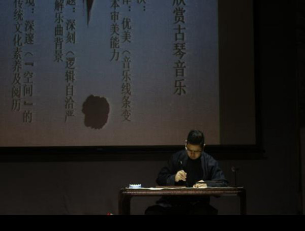 音乐欣赏本就是一种审美体验,它源于直觉,是脱离意志和欲念、抽象思考和逻辑思维的心理活动。古琴音乐更是有着独特的审美特质。王老师特意为大家准备了一曲古琴版的超级玛丽(一种单机游戏),那是怎样一种的体验啊?忍俊不禁之外,百般无所适从,瞬间具象了这道器可非一般娱乐之用。