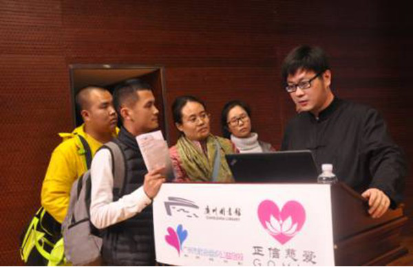 2017年12月16日下午,广州图书馆多媒体鉴赏区携手广州市正信慈爱协会、广州机关党员志愿者彩虹服务队、广州市财政局志愿服务队,诚请浙派徐门琴馆、广州紫泥山馆文化传播有限公司成功举办了“音乐零距离”第12期——《“如是我闻”浙派古琴艺术讲座及鉴赏》。1号报告厅再次坐满了热情的读者,在一波又一波热烈的掌声中,讲座超时1小时,最后加曲一首《秋鸿》,大气悲壮,完美收官。