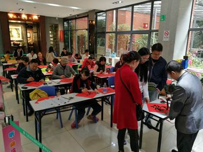 为迎接新春,弘扬中华优秀传统文化,近日,越秀区图书馆开展“国学院——春意绵绵天赐福”活动,请书法老师与读者一起挥毫泼墨,用心写“福”,受到读者热烈欢迎,座席爆满。