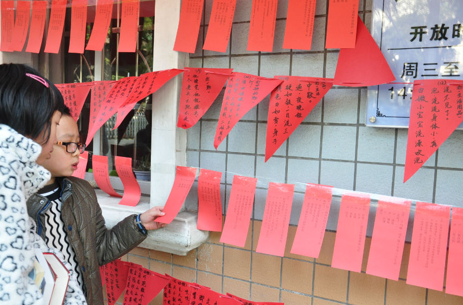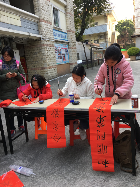 2月3日下午,由白云区图书馆主办的 “我们的中国梦”——文化进万家之迎新春写春联活动在文化中心大院B2栋楼下空地举行。活动设置了毛笔书写春联、猜灯谜和环保知识有奖问答三个环节。