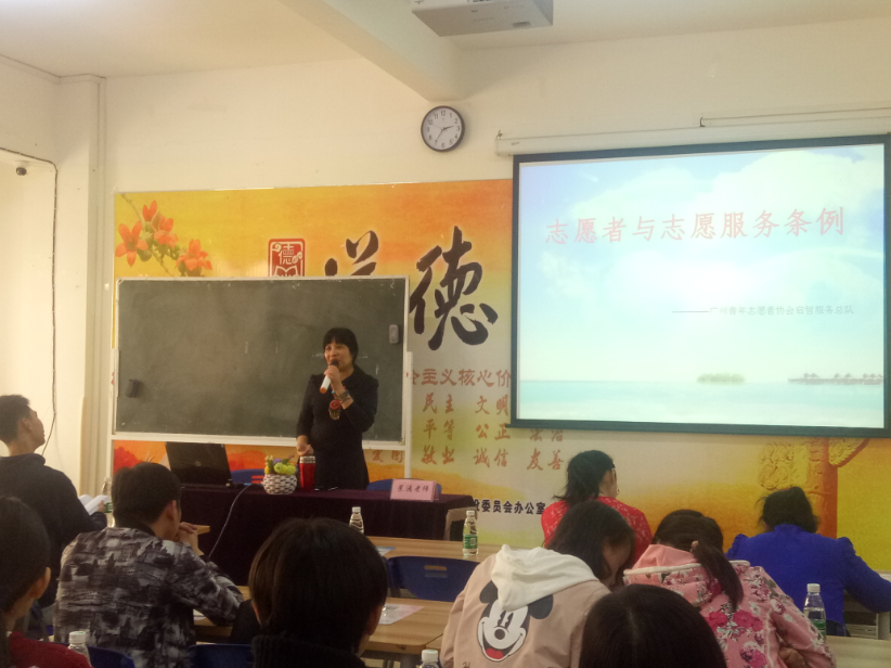接着茉漓老师又以启智服务总队在白云区图书馆开展的志愿服务项目为例,向在座志愿者介绍白云区图书馆志愿项目的招募、管理、发展和激励等方面的成功经验,与在座的志愿者共同探讨如何将《志愿服务条例》运用到实际志愿服务中,并提出了她对《条例》提出意见和建议。