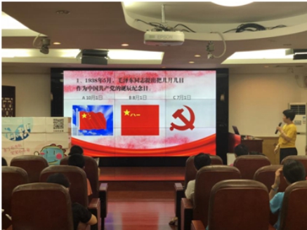 首先,活动现场的越图工作人员为大家推荐党的知识的有关主题图书,宣讲党的有关知识,并结合“纪念中国共产党成立97周年”的主题,发动各位小朋友参加党的知识有奖竞答环节,旨在向小朋友普及党的有关知识,引导小朋友对党的知识有感性的认识,引导小朋友回忆那一段段血火交织的岁月,一场场风雨砥砺的记忆:从上海石库门和南湖“红船”出发,中国共产党人的足迹遍及南昌、武汉、瑞金、延安、西柏坡……无数共产党人抛头颅、洒热血,前仆后继,引领中国人民一步步走向民族独立、人民解放、国家富强。小朋友们被生动的宣讲吸引住了,专心致志地听讲。在党的知识有奖竞答环节,小朋友们争先恐后地举手回答。