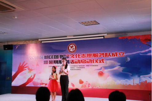 花都区图书馆的志愿者和少儿读书会小主持人主持活动