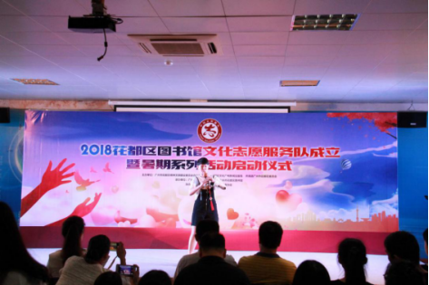 相关单位领导共同启动了区图书馆2018年暑期系列阅读推广活动。花都区图书馆和区广播电视台联合承办由花都区委宣传部、区文明办主办的"七彩·阳光——2018年花都区暑期青少年文化艺术节活动"中四项赛事,分别是“小小演讲家”——首届花都区中小学生故事大赛、“诵经典·心飞扬”——首届花都区少年诗词挑战赛、“汉字英雄”——首届花都区中小学生汉字听写擂台赛、“童心·童梦”——首届花都区少年朗诵大赛,掀起我区青少年暑期阅读推广活动的新高潮,进一步丰富青少年的暑期生活,提高青少年文化素养。