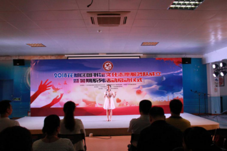 7月8日上午,2018年花都区图书馆文化志愿服务队成立暨暑期系列活动启动仪式在本馆隆重举行,花都区委宣传部副部长、区文明办主任胡才波、九三学社花都委员会主委、花都区文广新局副局长陈英等领导出席了本次活动。活动由花都区图书馆的志愿者和少儿读书会小主持人主持。