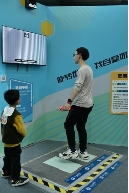 精彩不间断,欢乐不停歇。拼装活动结束后,“小候鸟”家庭一同前往参观“活力大湾区 快乐全运GO”运动科技主题展。展厅内,不但揭秘了苏炳添、全红婵等冠军训练营后隐藏的科技力量,更有各类互动体验项目吸引着孩子们踊跃参与,他们在“速度大比拼”和“全员冲刺”里奔跑,“妈妈,你看!我跑得真快!”;在“穿越激光阵”“镜像穿越”里,小候鸟们充分展示了身体柔韧性和敏捷性,“爸爸,我好厉害!”……孩子们的欢呼声、笑声在展厅中久久回荡,他们在趣味互动中,真切感受着科技为运动带来的新奇变化,在欢声笑语中释放活力、收获快乐。