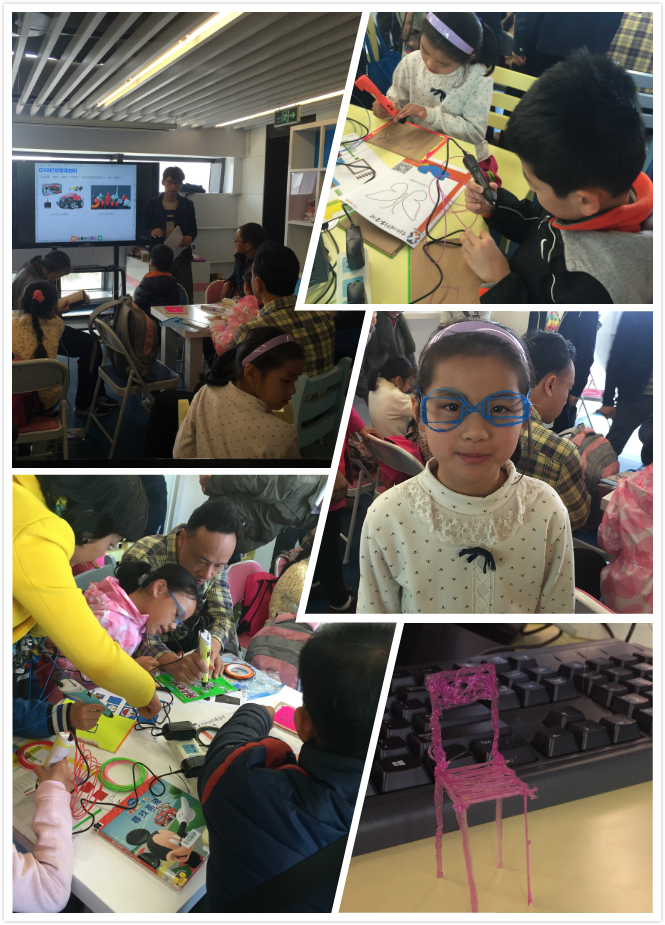 紧接着2月12日下午,创新林创客空间的老师为小朋友们带来了3D打印小课堂。小朋友都迫不及待用手中的3D打印笔,发挥自己丰富的想象力、创造力,制作出了栩栩如生的蝴蝶,仿真度颇高的凳子,眼镜……