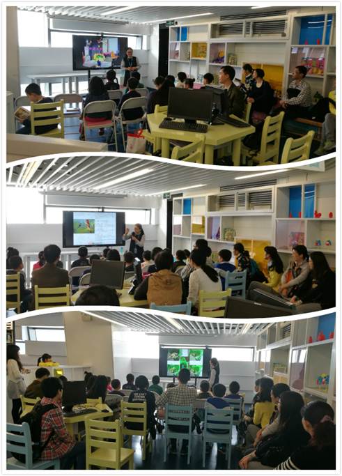 老师精心挑选了九种鸟,根据它们的特点取了昵称,如“小甜甜”、“小裁缝”、“小牛郎”、“大脖子”、“流浪者”、“夜猫子”等等,小朋友们纷纷猜测其所代表的鸟儿,奇思妙想气氛热烈。稍后老师以文本、图片、视频的形式一一介绍了这些主角,有小清新的鸣禽,也有重口味的猛禽。风趣幽默的语言、生动形象的图片、有趣搞笑的动画短片,严谨考究的纪录片深深吸引了小朋友,他们不时发出惊叹,相互讨论交流。渴望飞翔的几维鸟让孩子们为之叹息、体态优美的火烈鸟让孩子们赞叹、捕猎动物尸体的秃鹫让孩子们惊叹……在介绍鸟儿之余,老师也说明了鸟儿的生存现状,培养小朋友们保护鸟儿的意识。最后,老师向小朋友和家长提供了一些拓展的参考书目及电影、纪录片,让有兴趣的小朋友深入了解鸟儿王国。