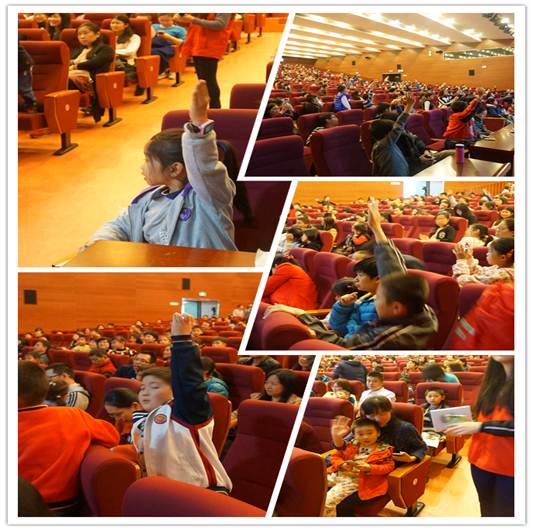 天文讲座活动安排于2017年3月11日下午两点半开始,下午两点不到500人的报告厅已经快坐满了,家长小朋友们有序进场。