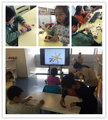 3月26日下午,馆员璐璐姐姐带领小朋友利用木棒、简易电源、小马达、心形装饰等材料,做出了一架架漂亮的彩虹风车。看着自己亲手做的彩虹风车缓缓转动,小朋友们十分开心。