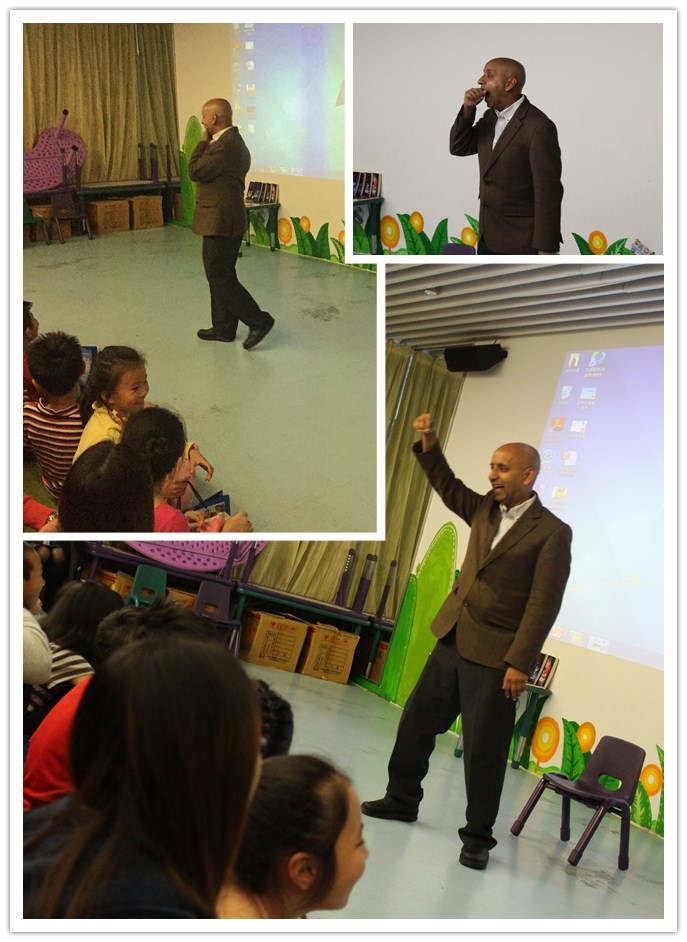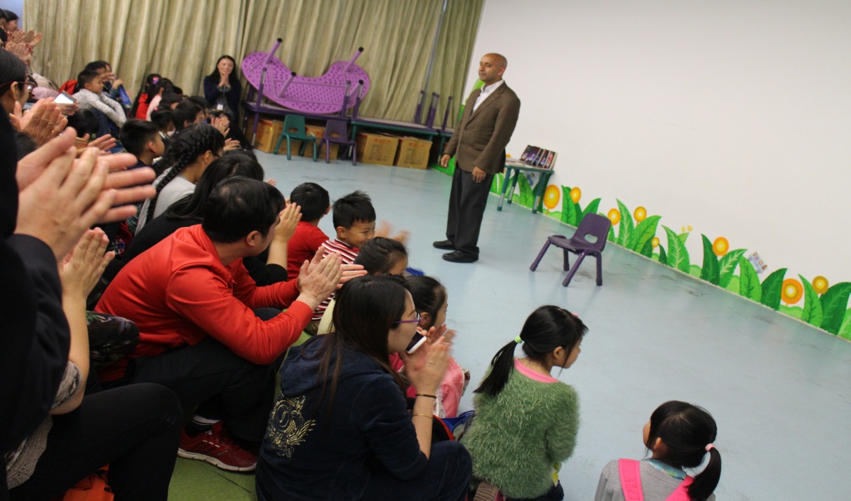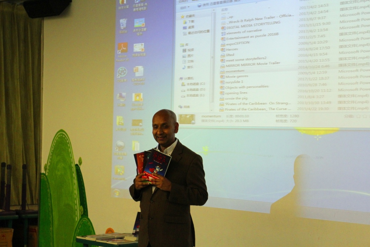 努雷·维塔奇全场用诙谐、幽默、简洁,明了的语言,配上丰富的表情与肢体动作,模仿其著作中的各式动物角色,惟妙惟肖向小读者进行故事片断演绎与创作技巧传授。故事讲述过程中,作者还不忘记和小读者互动,简单、有趣、容易的理解的英语单词与句子并不影响作者与小读者之间的交流,加上翻译在旁边生动的解释,全场洋溢快乐的阅读气氛。