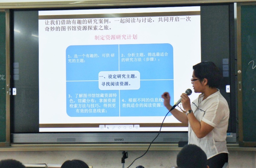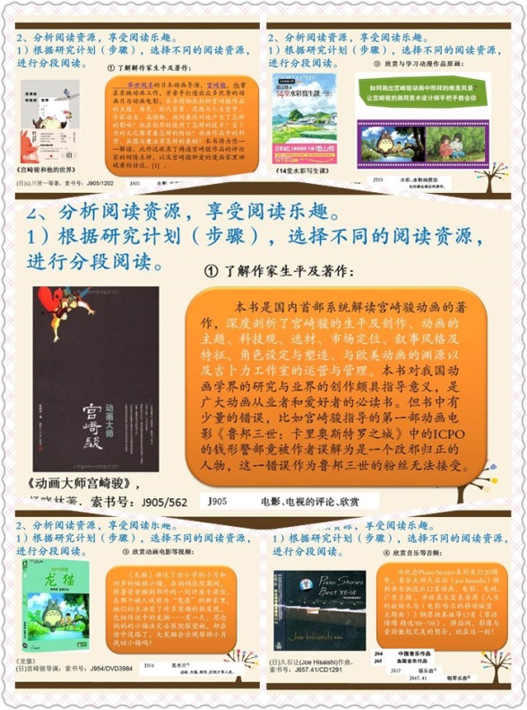在探索之旅中,方老师给同学们介绍了阅读与研究计划,主要包含资源检索、阅读方法等,并将此方法通过宫崎骏系列作品以实践方式传授给同学们。