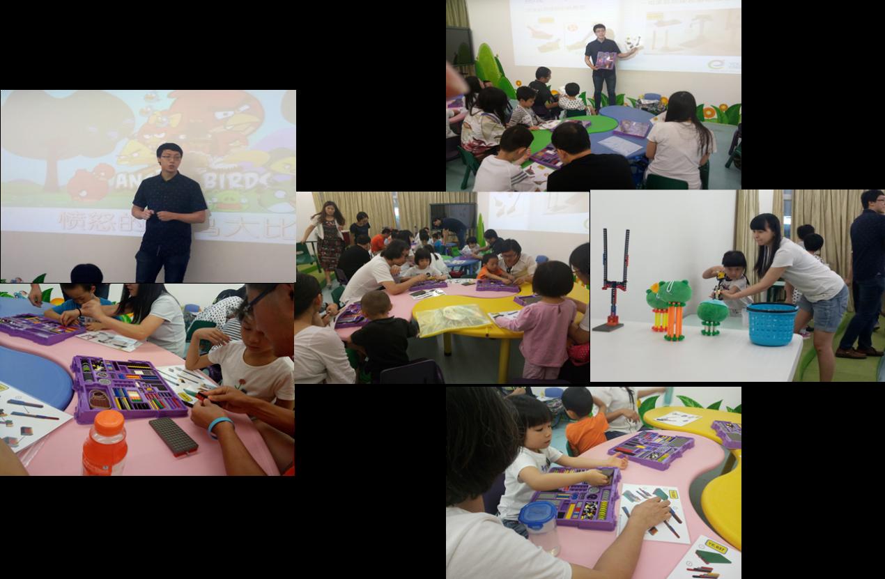 “愤怒的小鸟”作为一款网络虚拟游戏早已流行,不过,当游戏发生在现实生活中又会同小朋友们擦出怎样的火花呢?5月28日下午,e2 Young Engineers老师为小朋友组织了一场生动有趣的活动——“愤怒的小鸟”投掷比赛。小朋友们在家长以及老师细心的指导下用积木制作出投掷器的模型,并进行了激动人心的比赛。
