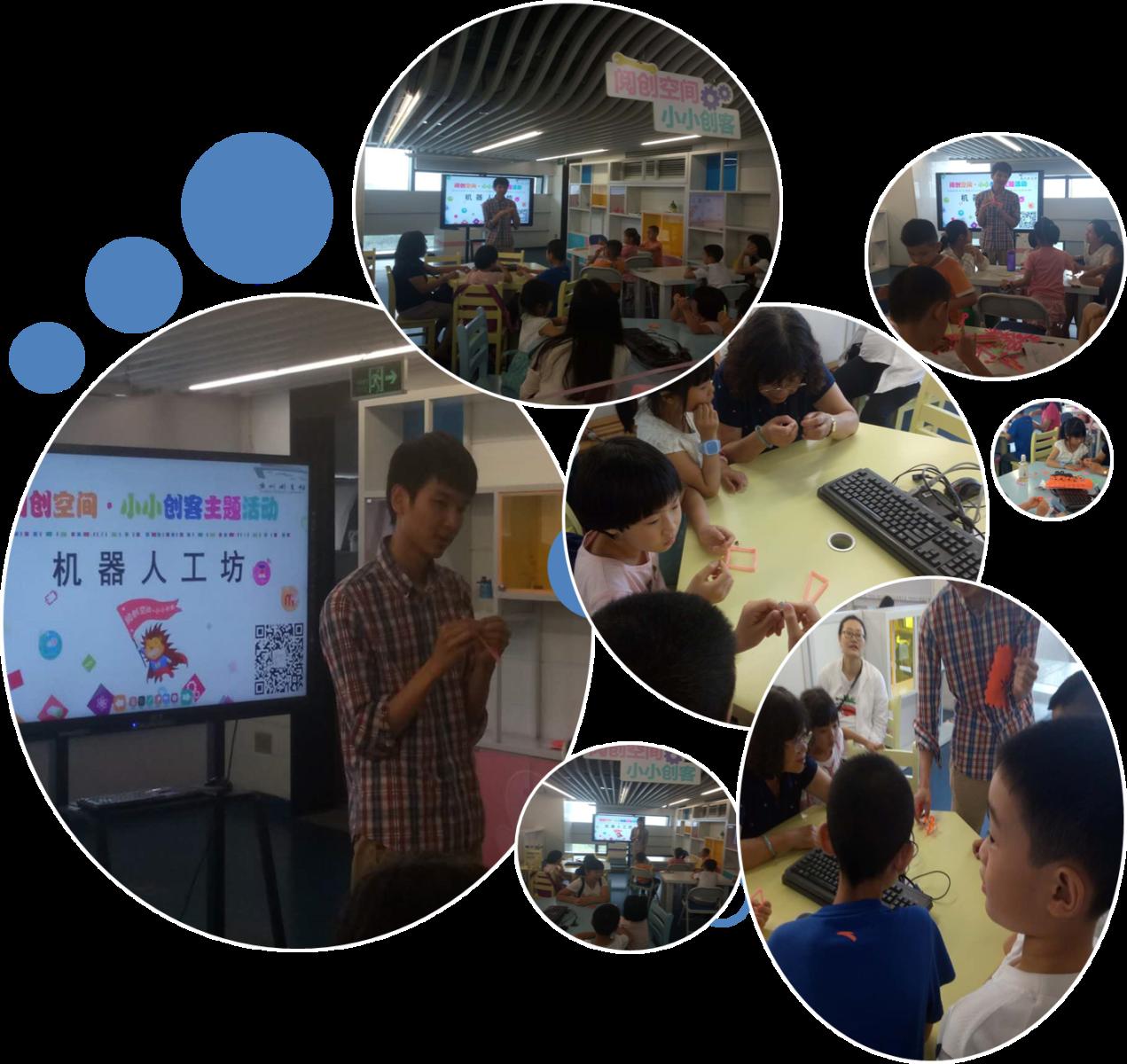 “阅创空间•小小创客”系列活动是广州图书馆为了激发儿童的创新能力和发散性思维,每月定期举办的公益小创客课程。本课程融合科学、艺术、阅读、创意、手工为一体,包括创作自己的书,小小设计师,创意儿童编程,趣味科普一小时等丰富多样的创客活动。
