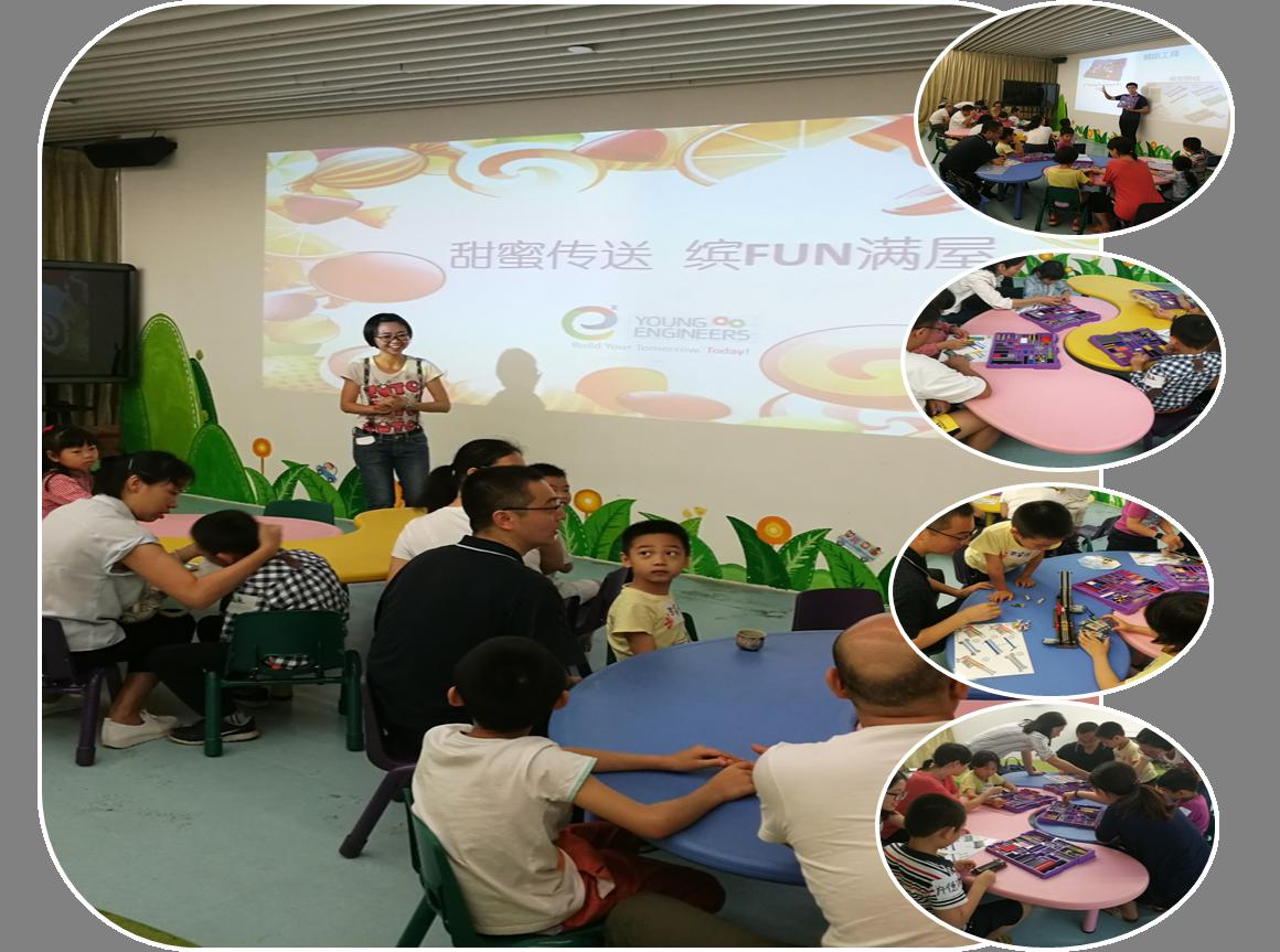 磅礴大雨把糖果王国的糖果传送带给弄坏了,小小工程师请小朋友们帮忙制作糖果传送带,让糖果小镇重新焕发生机。5月7日上午,在来自e2 Young Engineers老师的指导下,小朋友和家长利用积木亲子合作各自完成了负责的部分,然后拼接在一起,连成一条长长的甜蜜糖果传送带!小朋友将自己的糖果放上去,就可以把糖果传送到另一头的爸爸妈妈手上里!