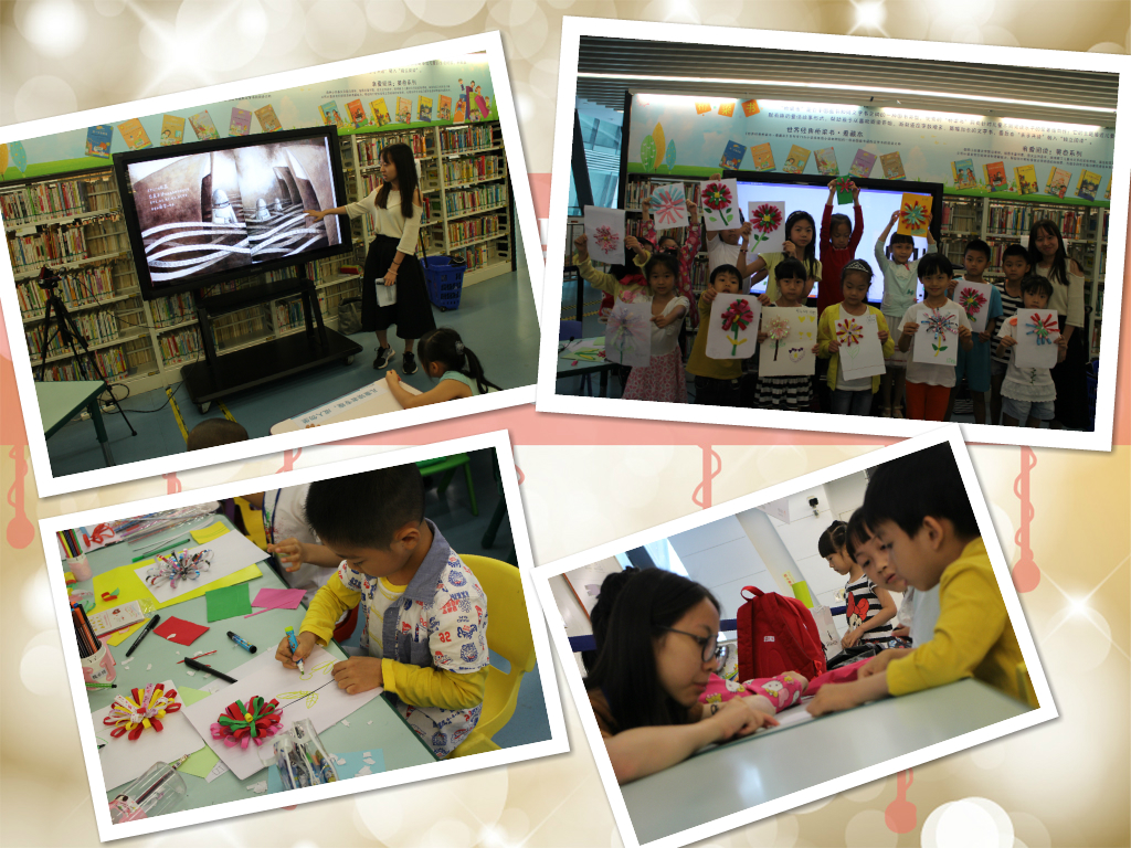 连雨不知春去,一晴方觉夏深。这正是华南地区入夏的特有写照,带着这份情绪,又迎来了5月14日的诗歌欣赏课。吴颖老师也感受到朝阳灿烂的夏日,催生了灵动的生命,因此这一次的诗歌鉴赏她特意利用文字工厂来开发小读者们的创作思路。请他们在一连串活泼生动的形容词里选择最喜欢,最有感觉的词语对初夏的美进行心中的描绘。创作环节设置题目《借东西》,引导小朋友创作,以此把万物的思维细胞全部照亮。最如:向天空借了一轮明月……令人动心的环节是红色为主题的手工制作,意味着夏日的热情似火。活动进行得顺利,也让夏日的主题印象留在大家的心中。