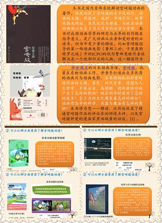 宫崎骏动画题材的来源极为丰富,举凡古今,无论日本、欧洲还是世界各地的传说、神话、史诗、小说、随笔散文、哲学著作、影视动漫等各种样式的素材(阅读材料)都在作品中有所出现。方老师将向同学们介绍了宫崎骏作品动漫与原著。引导学生们课后可以拓展阅读。