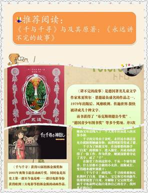 宫崎骏借用其作品告诉同学们要以真、善、美的眼光来看待世界,发现世界、社会以及人与人之间的美好。方老师推荐同学们阅读《千与千寻》原著《永远讲不完的故事》。