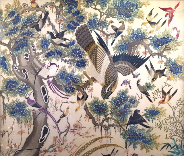 绣成安向春园里,引得黄莺下柳条——粤绣