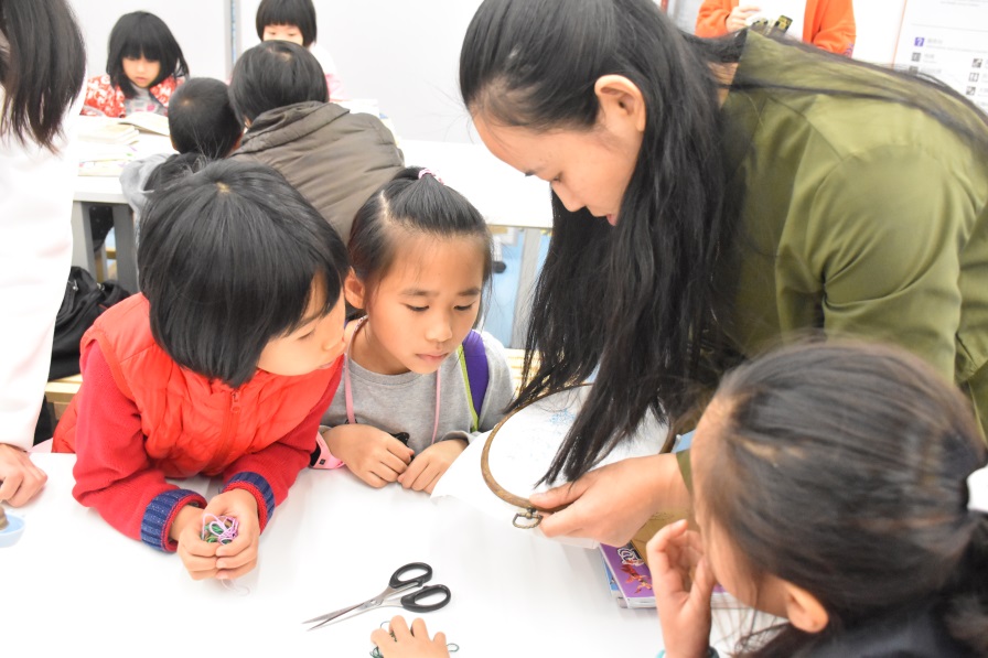 课程伊始,蔡老师先为孩子们展示了广绣的历史及制作流程。广绣不仅是一项技艺,更是一份历史、一份传承,在蔡老师娴熟的手法下,植物、动物等优美的广绣作品跃然而出、灵动传神。首先,老师展示了花朵的绣法,然后耐心的为孩子们辅导,让孩子们开始动手制作。尽管广绣内涵深远,制作复杂,孩子们在课堂上仍然竭尽全力去跟上老师的步伐,制作出自己的广绣作品,而且本次课程课堂氛围活跃,欢声笑语不断,在让孩子们感受到广绣艺术魅力的同时,也领悟到中华民族传统文化的博大精深。
