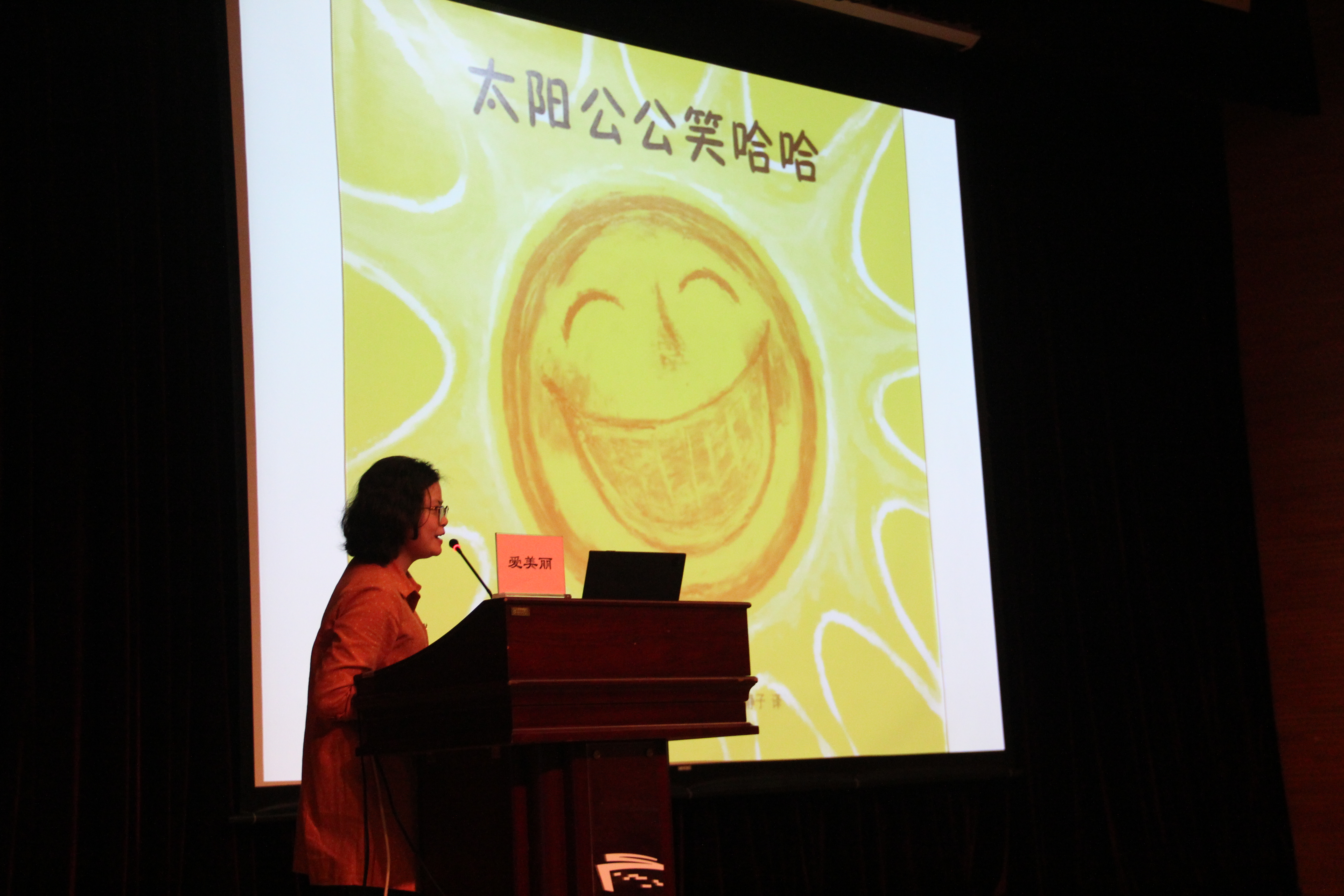 她分别用纯图画、纯文字、图文结合三种方式讲述了绘本故事《太阳公公笑哈哈》,她说,通过三种方式对比演绎,能让读者们体会到,演绎方式的不同带来的感受也是不一样的。