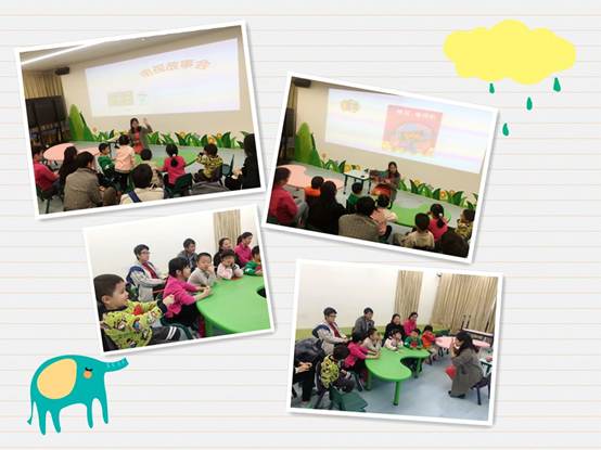 3月的最后一场读书会,来自乐乐老师主讲的“咿呀大本营”。活动一开始,可爱的小宝贝们在老师的带领下通过儿歌进行自我介绍小接龙,然后在小沙锤的响声中有节奏地“shake shake”。互动环节过后,大家不再像活动开场时那样害羞,都积极地参与到活动中来。绘本《抱抱》讲述了小猩猩和猩猩妈妈之间的温馨故事,所以听完故事以后,小朋友都给身后的爸爸妈妈来了个大大的“抱抱”,这就是爸爸妈妈和小宝贝们心中最最幸福的时刻!