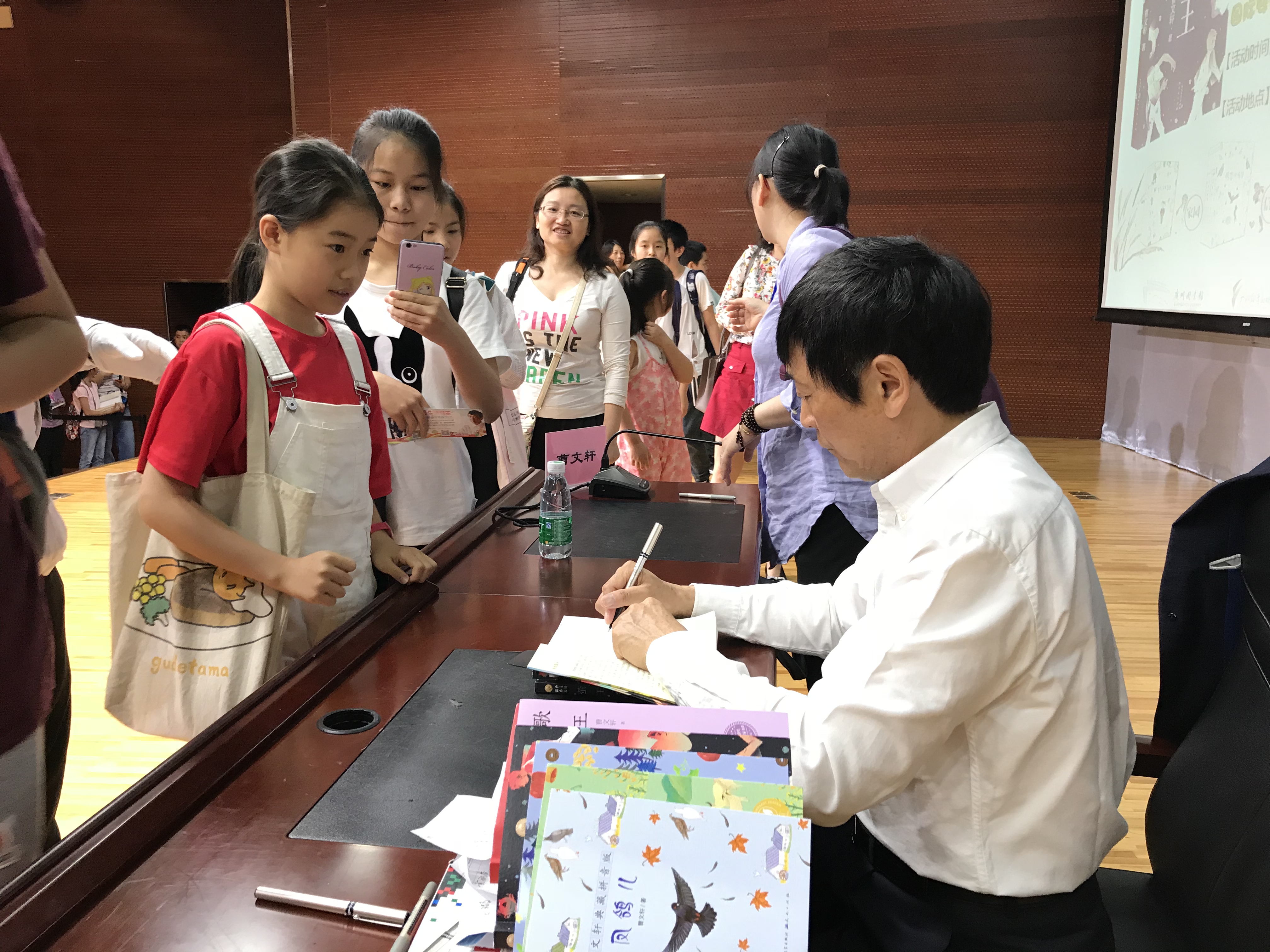 最后的签名环节,在现场工作人员的指引下有序进行,等候签名的读者众多,但曹老师依然耐心地为每一位读者手中的作品签上名字。