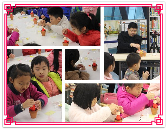 1月28日手舞传奇创意艺术坊太史老师的超轻粘土活动,名额爆满,超轻粘土健康卫生,颜色鲜艳,既能锻炼小朋友的动手能力,也能提高小朋友的思维和创造能力。本月的最后压轴活动就是粘土制成的辞旧迎新狗年财神,太史老师带来的作品充满创意和心意,小小的花盆中红色表示喜庆,黄色代表金灿灿的财富,而小狗在十二生肖中排在十一位,狗的叫声音同旺,寓意忠诚平安财富。在太史老师的幽默讲解中,小朋友和家长喜笑颜开,一边听讲解一边观察老师的制作步骤,在欢声笑语中,完成了可爱吉祥的辞旧迎新狗年财神。