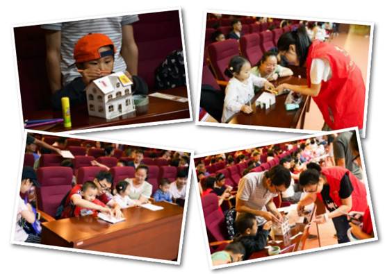 在志愿者的协助下,小朋友们用卡纸做出了自己的“生态建筑”,并给它画上了门窗装饰,独一无二的生态建筑透过立面的花纹在屋内呈现出优美的光影,小朋友们独特的创意让志愿者们十分敬佩。我们下面看一些精彩的瞬间吧!