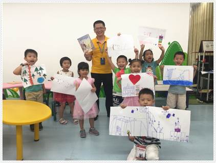5月26日本月的最后一场活动来自馆员晴晴爸爸的《爸爸带我去宇宙》,这是“小樱桃”阅读树第一场粤语专场读书会。宇宙在哪儿?世界那么大,哪里才是真正的宇宙?晴晴爸爸用原汁原味的粤语为大家带来精彩的故事,并为孩子们推荐了许多和宇宙相关的绘本。这些绘本深受大家喜爱,才一眨眼儿的工夫就被抢借一空。活动的最后环节,小朋友各自描绘出未来最想和爸爸一起去的地方,相信大家在认真分享和设计画作的同时,也能深深感受到来自父爱的伟大和细腻。