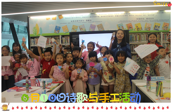 诗词是什么?孔子说:“不学诗,无以言”,“诗,可以兴,可以观,可以群,可以怨”。诗词可以感受文字的韵律美,是最能启发儿童思想感情的文学样式。6月10日,宫老师和小朋友一起读诗写诗。“梅子留酸软齿牙,芭蕉分绿与窗纱。日常睡起无情思,闲看儿童捉柳花”这是诗词中的夏天;“夏天的颜色是绿色的,就像棒棒糖的味道”这是小朋友笔下的夏天;“夏天的晚上,空调和风扇呼呼地响着,楼长奶奶把月亮的溶液装进雪糕模具”这是绘本故事中的夏天;蛋糕盘和彩纸做成的冰淇淋,这是小朋友手中的夏天。不同的体验和感悟,小朋友们和宫老师在图书馆度过开心的夏天。
