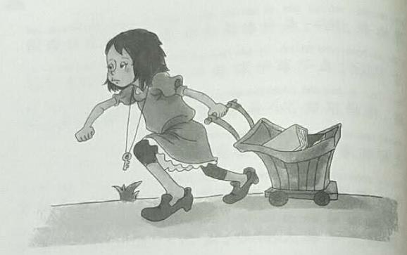 你看过拉着小推车的小巫婆吗?伊丽莎白正在用小推车搬着图书馆借来的书呢!看来即使是拥有着神奇魔力的小巫婆,读书也是修行生活中的一部分。也许智慧就是魔力的一种吧!